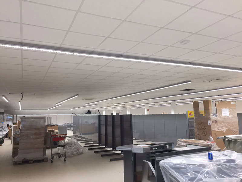 Totalabriss und Neubau von 1200 qm Decken mit Mineralfaser in nur 3 Wochen.